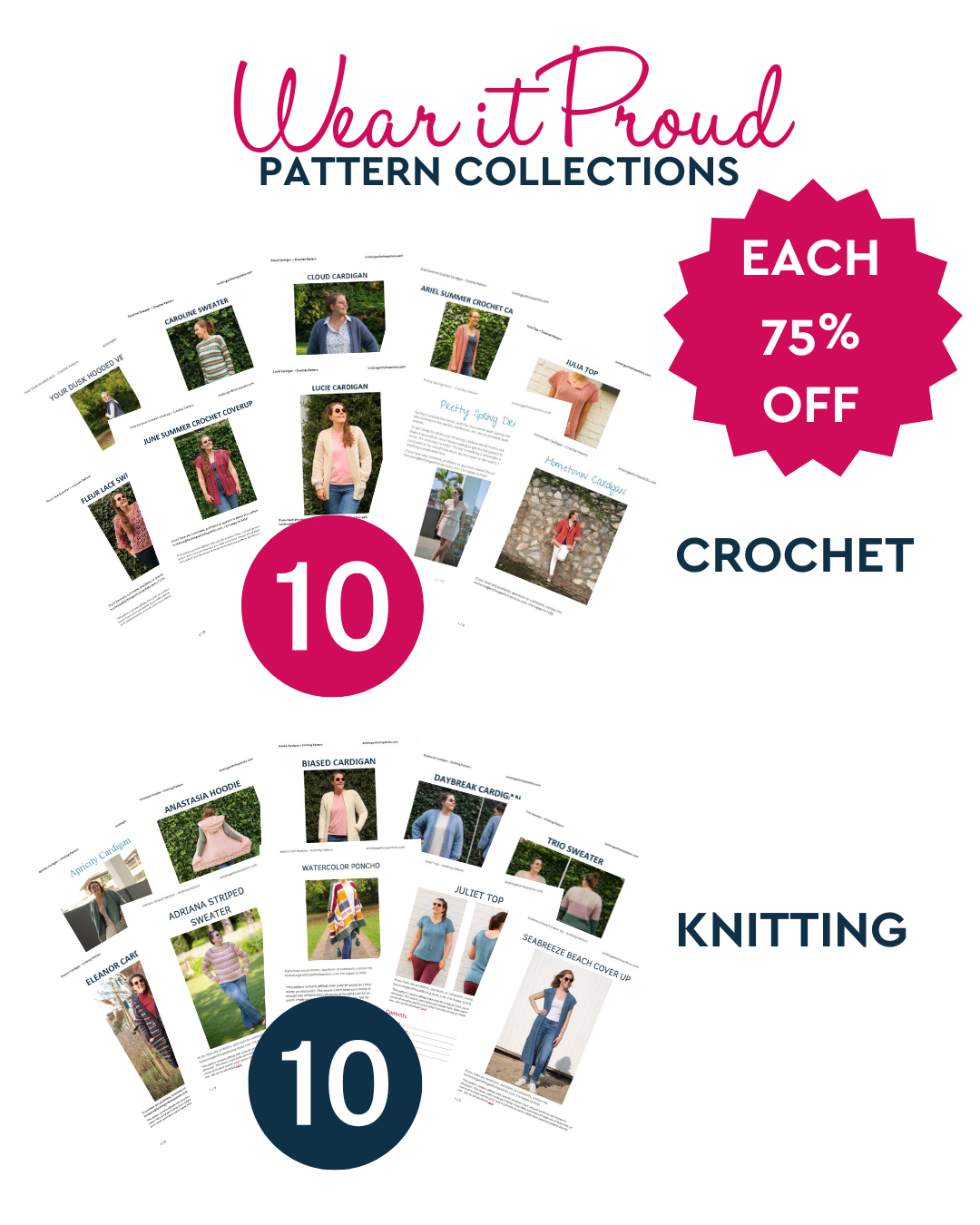 Each includes 10 size inclusive garment patterns (XS to 5XL) that guide you step-by-step from your first stitch to your finished piece.
