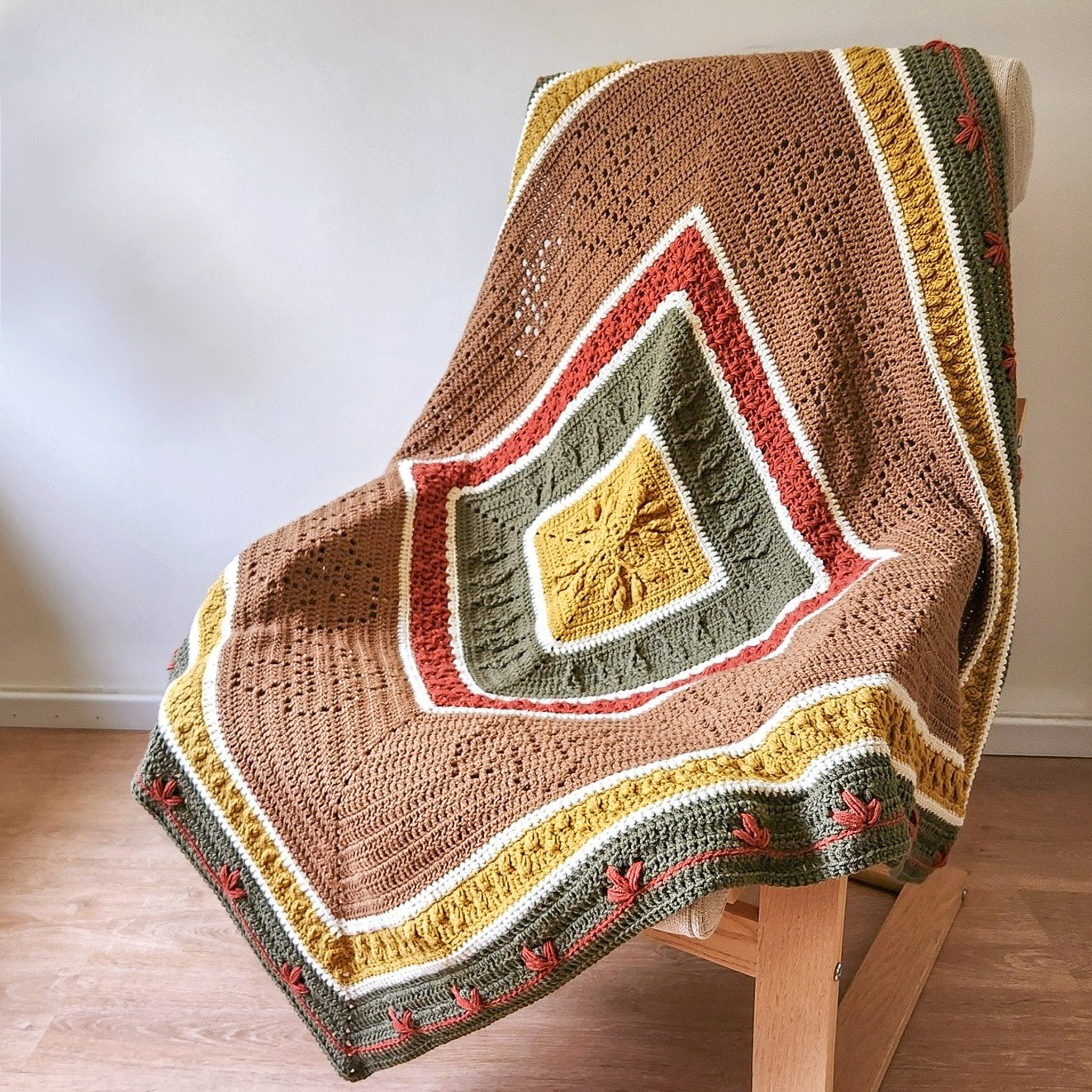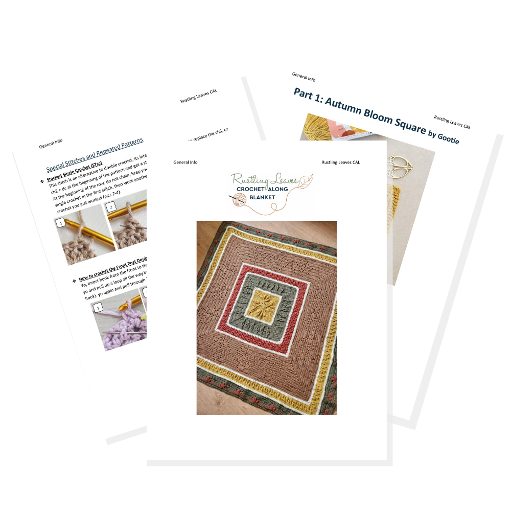 The Rustling Leaves Blanket was designed with intermediary crocheters in mind. If you only just started crocheting a short while ago we recommend you start with one of our easier blankets such as the Tidal Texture Throw, the Skybound Sampler Blanket or the Harmony Throw.