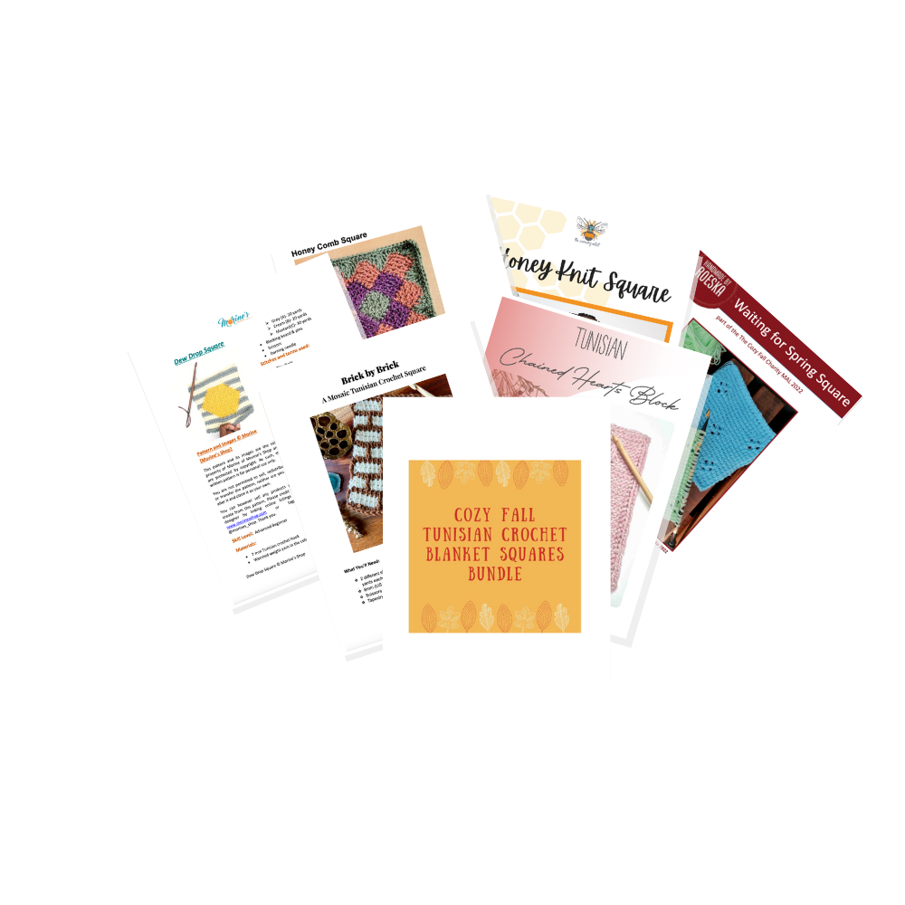 Grab the Cozy Fall Tunisian Blanket Square Bundle and start crocheting the coziest fall blanket featuring 20 fall blanket square patterns from your favorite crochet designers online today!