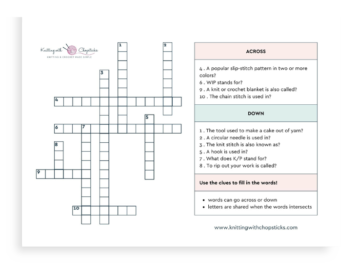 Signup for my email list below and get your FREE Knitting & Crochet Crossword straight in your inbox
