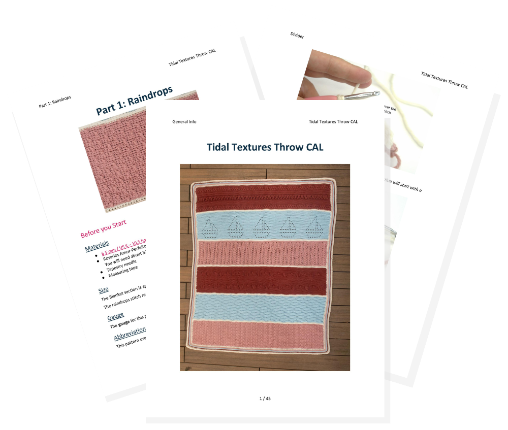 45+ pages of detailed step-by-step instructions for all 6 stripe patterns, divider section and border in one beautifully formatted ad-free PDF.