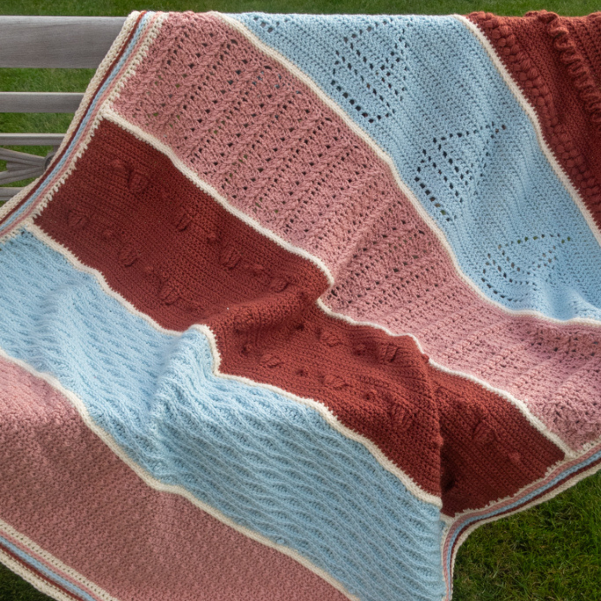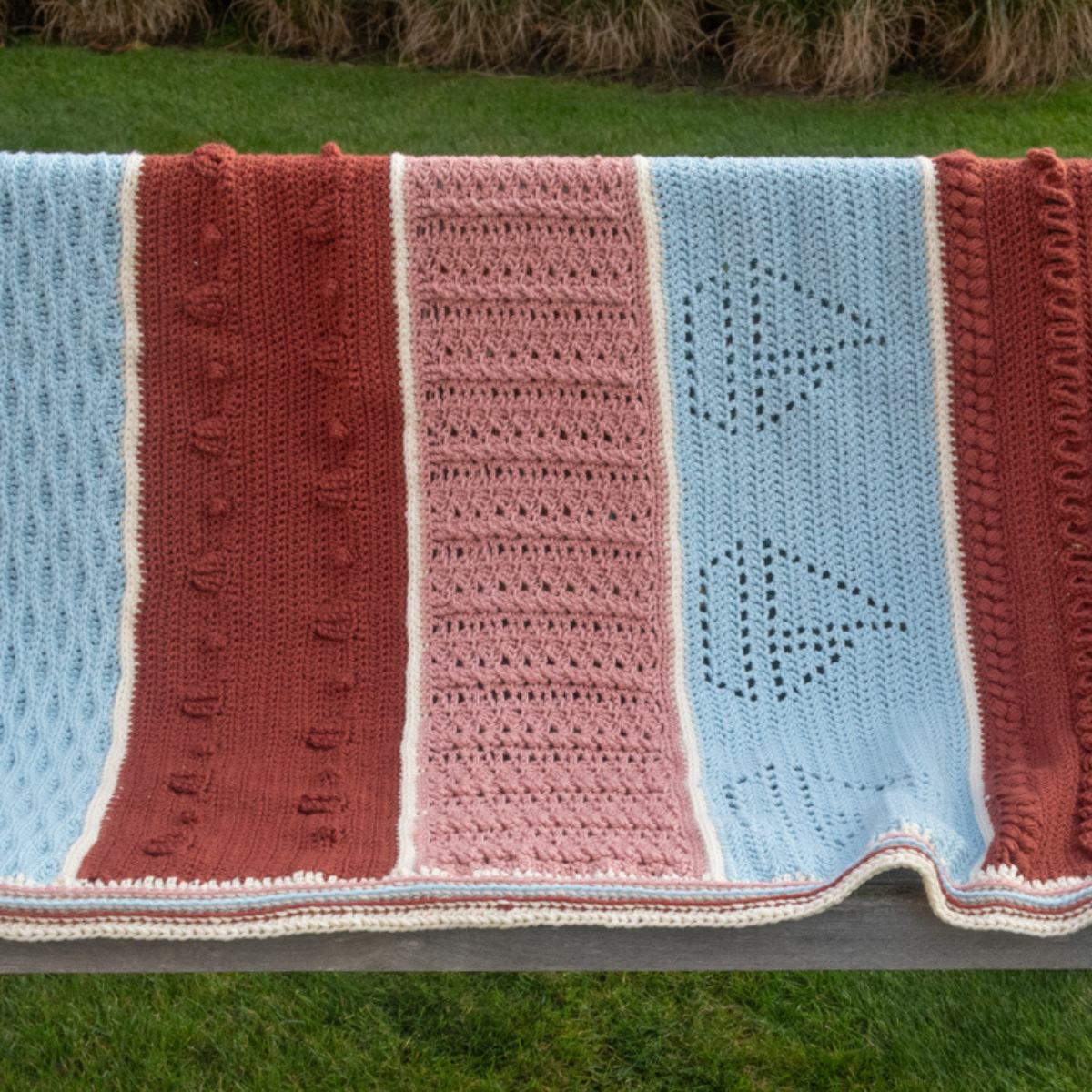 Challenge yourself to move past basic stitches, discover new techniques and craft a beautiful sampler blanket with 7 unique stitch combinations with the