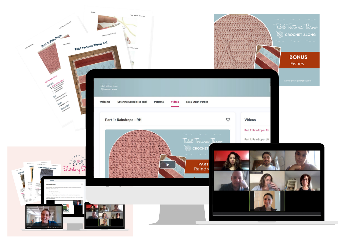 The Chopstick's Stitching Squad is my signature membership program to help knitters & crocheters gain the inspiration, confidence and skills to turn their creativity into beautiful creations while broadening their crafting horizon by teaching them knitting and crochet techniques, as well as my practical know-how and experience, providing patterns and a tight-knit community of worldwide crafting friends to cheer you on.