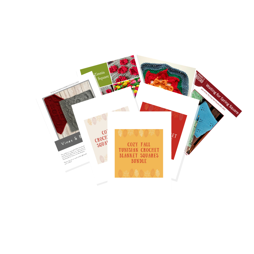 Grab the Cozy Fall Blanket Square Trifecta Bundle and start crafting the coziest fall blankets featuring 60 fall blanket square patterns from your favorite indie designers online today!